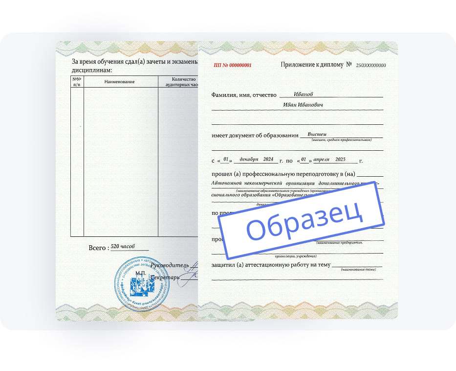 Диплом, выданный учебным центром «ПетроПроф», равнозначен вузовскому диплому о высшем образовании. Он также заносится в Федеральный реестр документов (ФИС ФРДО), что гарантирует его легитимность. Документ становится основой для карьерного развития, позволяя выпускникам выбирать наиболее перспективные места работы.